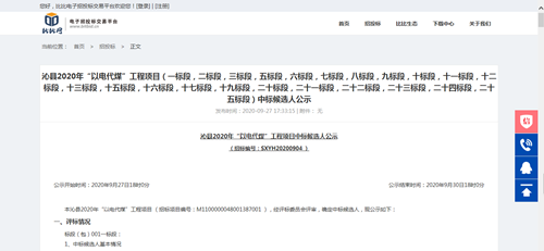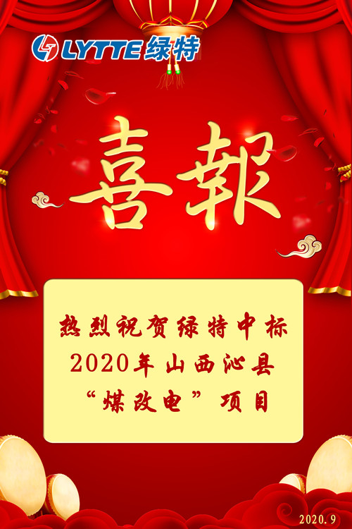 9月27日,2020年山西沁县“以电代煤”工程项目中标候选人公示,经专家委员会评审,绿特成功中标,再下一城。